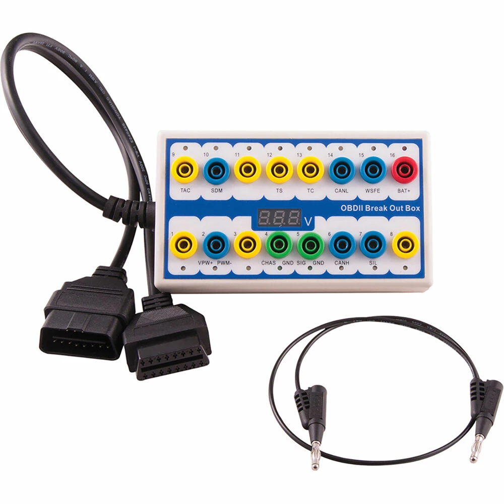 Easily access the 16 pins of the OBDII connector fitted to all modern vehicles. Plus check power, ground and CAN Bus signal quality (depending upon vehicle configuration).