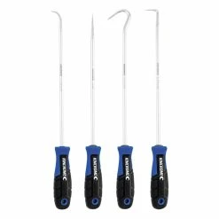 The Kincrome Large Hook and Pick Set is manufactured using strong and durable Chrome Vanadium Steel and is chrome plated for enhanced corrosion resistance. It includes 4 different styles of picks and hooks suitable for a range of automotive, marine and general purpose applications. Featuring TorqueMasterยฎ ergonomically designed handles, this hook and pick set offers an anti-slip and positive grip.