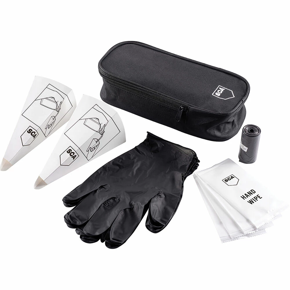 - Kit Includes 1x storage bag, 2x pairs of disposable gloves, 4x cleaning wipes, 2x disposable cardboard funnels and a roll of 15 disposable rubbish bag