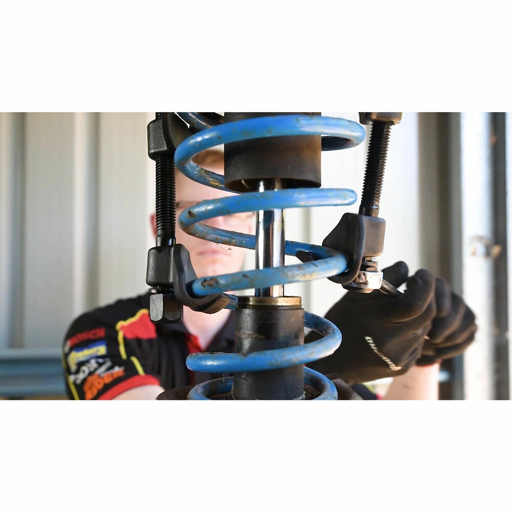 The Toledo Coil Spring Compressor is a tool that allows the user to take the strain off a spring during the process of changing shock absorbers. These compressors are dual jaw to give extra stability during use and have a 9″ maximum jaw capacity. Sold in pairs, these spring compressors are the perfect size for passenger vehicles – with a working range that covers their entire length of 285mm. Manufactured using drop forged carbon steel, with heat treated steel lead screws for use on 4WD’s and performance suspension. You can be certain that these spring compressors wont bend or break and will perform their duty for years to come.