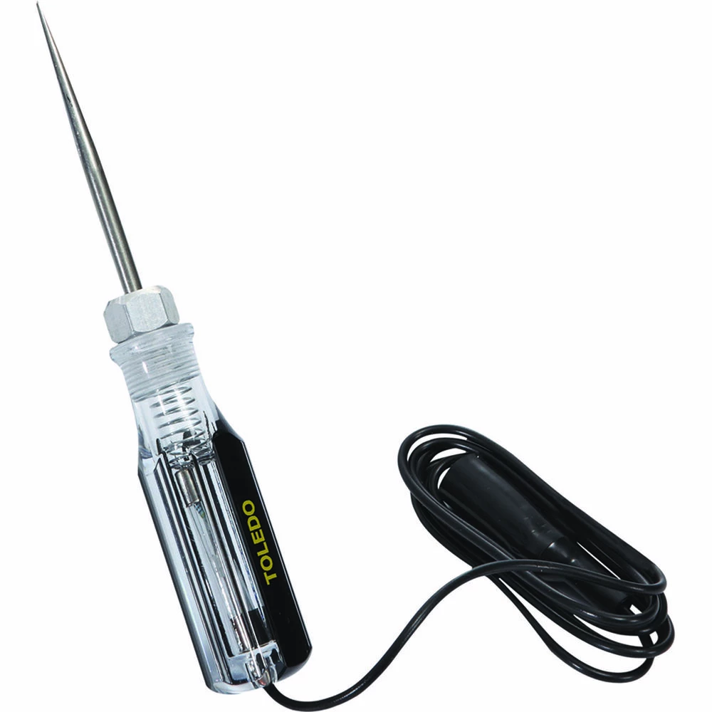 When working with computer circuitry, and in particular automotive ECUs, extreme care must be taken to ensure no damage is caused to any electrical components as excessive amounts of current or incorrect earthing can cause irreversible damage. The Toledo Computer Safe LED Circuit Tester is different from conventional circuit testers as it draws far smaller potentially damaging amps when testing a circuit. This tester also uses LED lights to indicate positive and negative polarity. The heavy duty acetate handle holds a stainless steel probe which connects to a 1 metre coil type rubber lead ground connection making it perfect for checking ECU circuitry as well as other applications around the vehicle.
