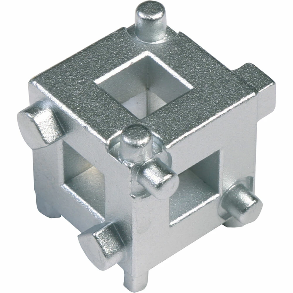 This Toledo Brake Piston Cube is manufactured from lightweight aluminium and provides 5 popular piston cavity configurations to suit a wide range of cars; a handy addition to the toolbox when completing brake adjustment, replacement or rebuilds. Simply find the configuration that fits your piston, attach your 3/8″ socket and slowly wind the piston back in to a suitable position. Forget using a pair of pliers or a screwdriver, get the right tool and do the job right.