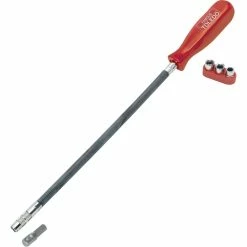 Engine bays can often be crowded and more often than not the one item you need to reach has no room for a spanner or a ratchet. With the Toledo Hose Nut Driver’s 300mm long flexible shaft you’ll be able to reach a wide range of hose clamps and nuts in inconvenient locations. Sporting a 1/4″ square drive this driver will suit sockets up to 10mm, and the plastic handle provides strong grip and improved comfort. Supplied with 6mm, 7mm and 8mm sockets.