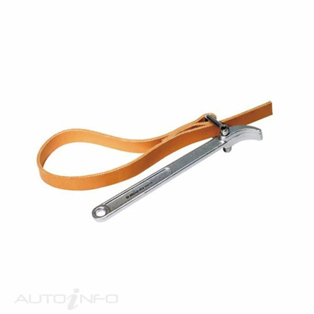 Heavy duty leather strap wraps around the filter and adjusts to the required size to remove and replace the filter