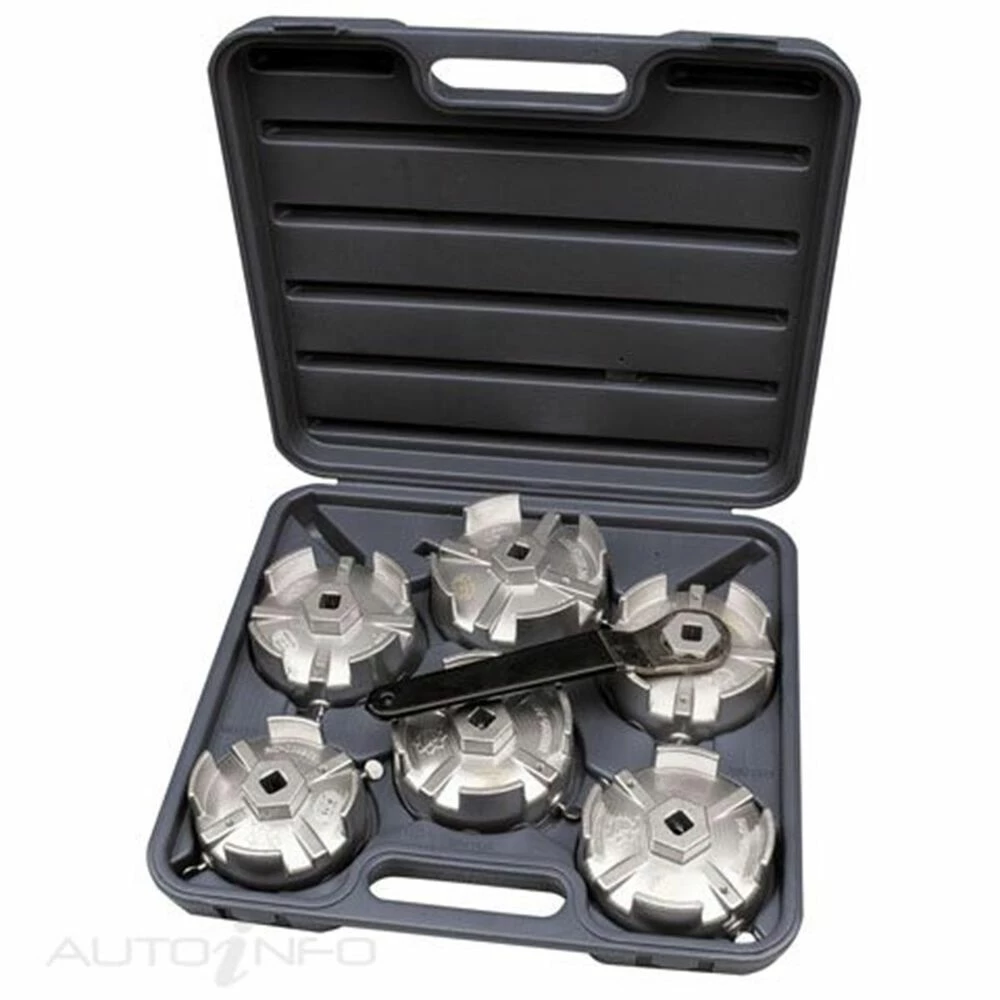 Cup style oil filter wrench set suitable for canister filters. Suitable to take up to 85 Ft. Lbs of torque.