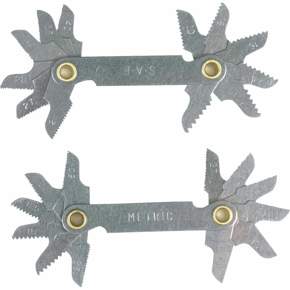 - One metric and one SAE thread pitch gauge, 12 pitch blades per tool which cover majority of common threads
