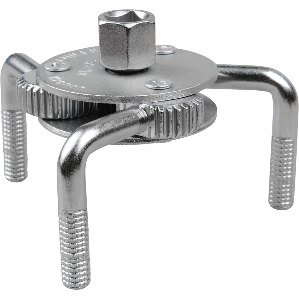 Changing your oil and filter is an easy task, but youβll need a few tools to do it. Something to remove the oil filter is essential, and ToolPRO has a tool to cover most types of filter. This adjustable 3 prong filter remover uses multiple pivot points to gain leverage and has multiple size positions to cover a wide range of filters. Simply connect to a 3/8″ or 1/2″ ratchet or breaker bar, slip over the filter and apply pressure. The metal jaws bite into the filter casing β increasing their pressure the harder you turn the handle. When your next service rolls around, be sure to pick up a ToolPRO oil filter remover; and make your job as easy as possible.