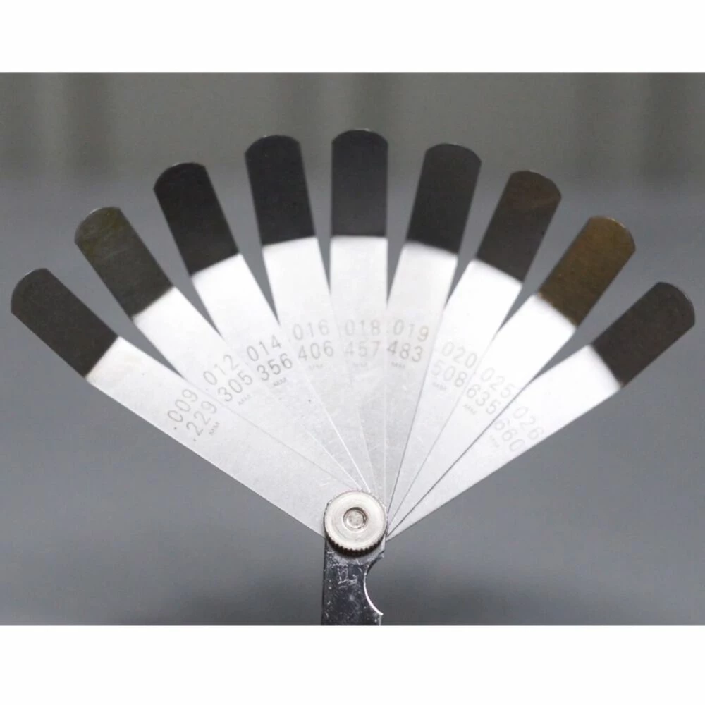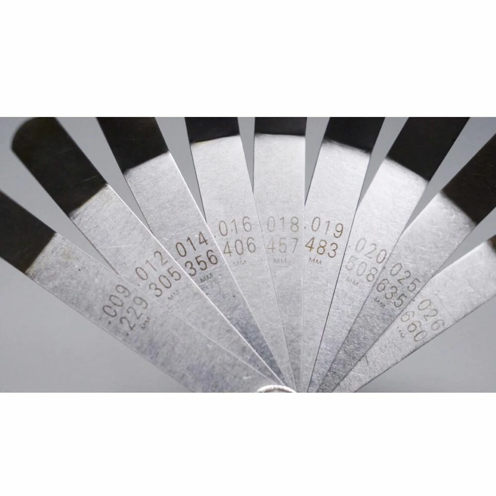 - 9 steel blades ranging from 0.009″ to 0.026″ (0.229 to 0.660mm)