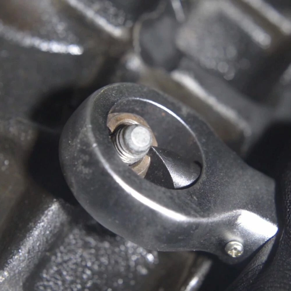 To use a ToolPRO Nut Splitter, start by loosening the adjuster bolt just enough to fit the nut inside the nut splitter. Ensure that you face the adjuster bolt in a direction which allows you to fit a ratchet or spanner to it. Try to split the nut in a spot that allows access to the adjuster bolt from both sides, as you may need to break the nut in half by performing this twice.