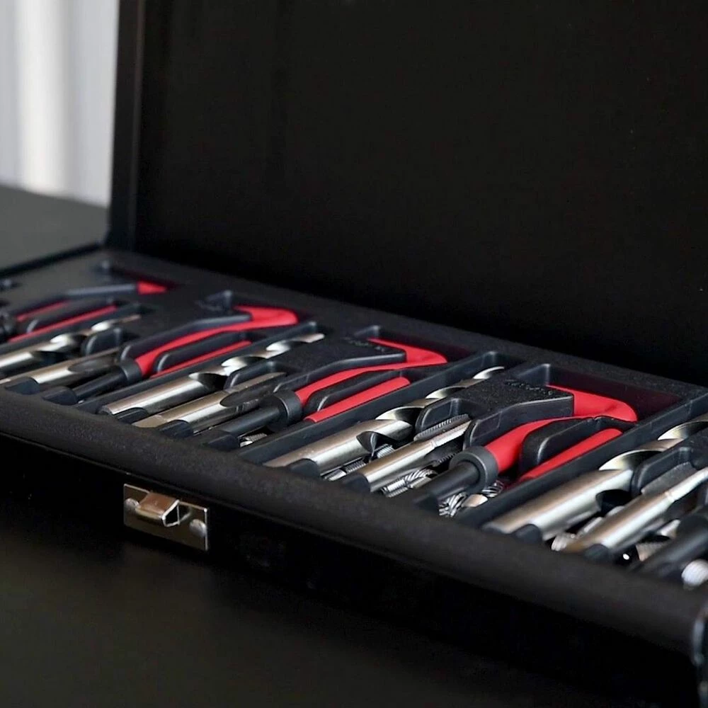 - Includes HSS drill bits, thread taps, insert installation tools & thread inserts to suit each thread size